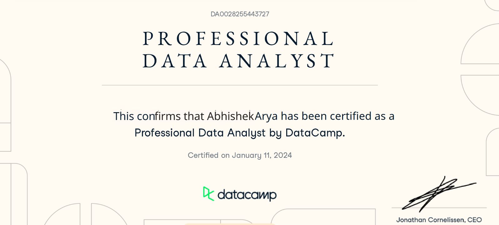 This section include my Professional data analyst Certification related to the field of Machine learning | SQL | Python | Data cleaning | Validation | visualization | Interpretation